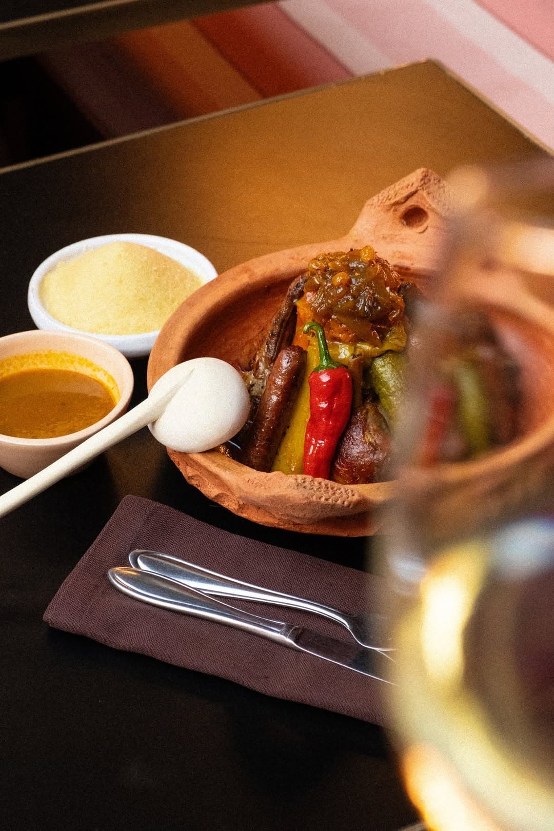 The pricing reflects the venue's positioning: an evening runs between 600 and 900 dirhams per person with drinks, placing Comptoir Darna firmly in the territory of occasion dining rather than casual repetition. This is dinner understood as event, where the meal is only one component of what the evening contains. The pacing of service assumes you are not in a hurry, that courses will arrive in rhythm with the room's own tempo, that the transition from appetizer to main is itself part of the choreography.