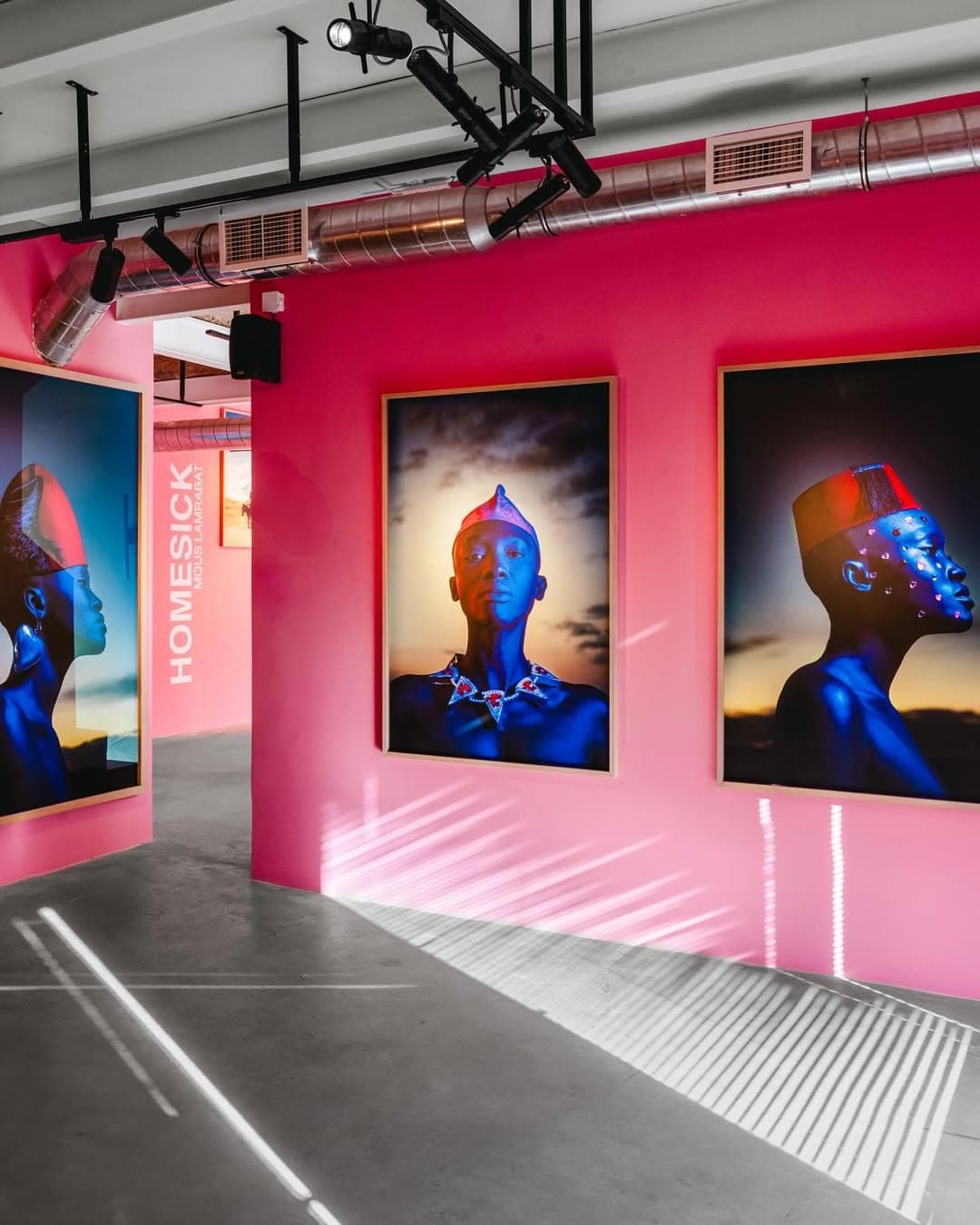 Jajjah is the only gallery in this selection that operates simultaneously as a place to eat, buy, look, and be in, and that ambiguity is not a compromise but a position. Hajjaj's practice has always dissolved the boundaries between high culture and street culture, between commodity and artwork, and Jajjah the space embodies that dissolution at 1:1 scale. The tin-can frames on the wall sell the same logic as the tea tins on the shelves. The price of entry is a cup of tea.
