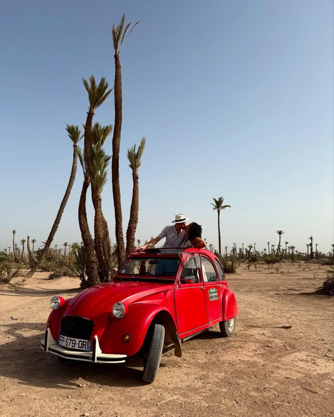 Moving through the medina in a 2CV produces a specific kind of visibility: you are in something recognisably out of place, which means the street notices you and you notice the street in return. The Palmeraie at dusk from a 2CV is a different proposition from the Palmeraie seen through a tour bus window. The scale is right. The pace is right. The colour is usually red or yellow, which helps.