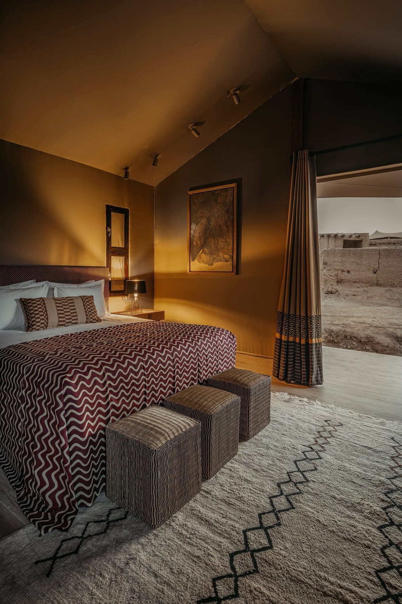 The tents themselves, called Safari Tents and Safari Suites, were not chosen for romance or theatrical effect. They were chosen because they leave the land intact, because they echo the nomadic traditions of the region, and because they do not claim permanence where the land's character should prevail.