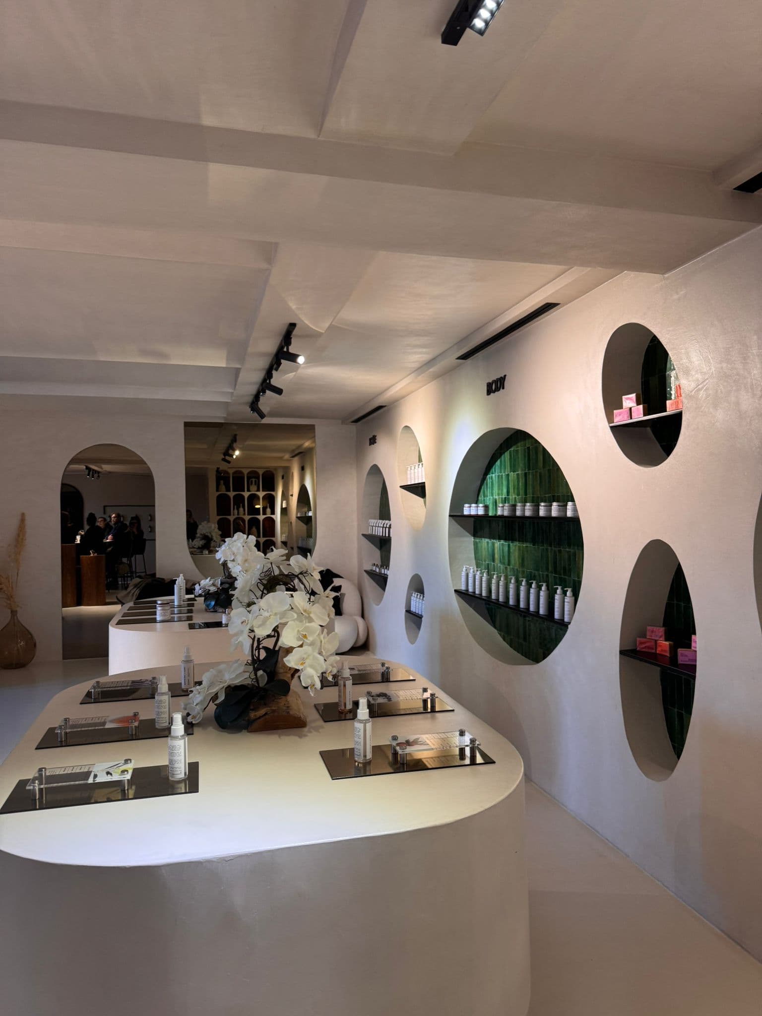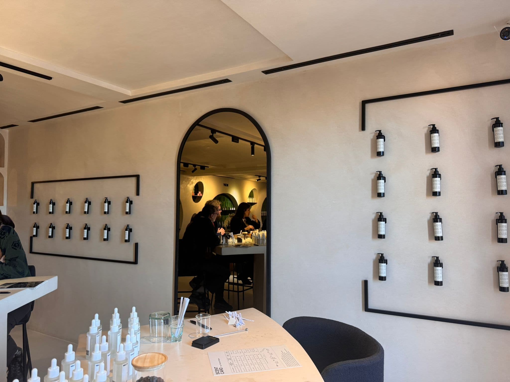 Scenti occupies a contemporary space in the Centre d'Affaires Opéra in Guéliz, a few minutes from the Jardin Majorelle. The design is modern and clean: a deliberate counterpoint to the souk-adjacent perfume shops of the medina, where hundreds of bottles compete for attention and negotiation is part of the transaction. Here, the register is calm, the surfaces uncluttered, the focus directed entirely at the materials and the process. The atelier is open daily from ten to seven.